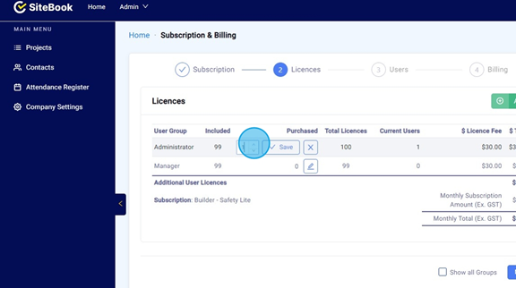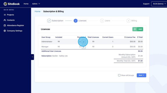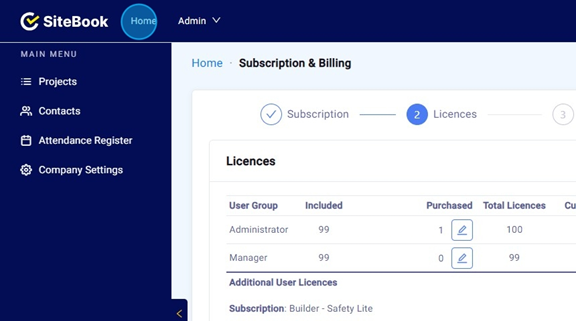 Additional Licences can be purchased by the Primary and Billing Contacts.