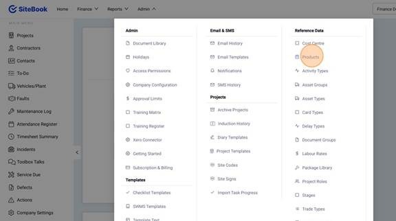 2. Click "Products" under Reference Data.