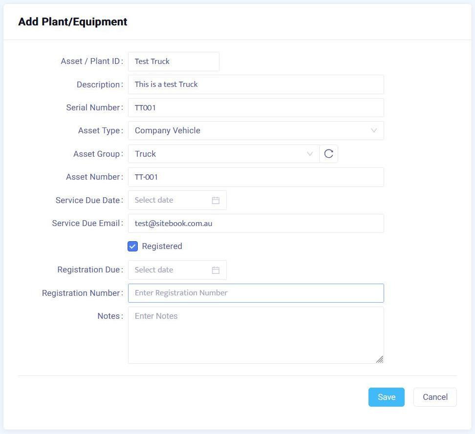 Adding Vehicles/Plant to the Asset list | SiteBook Help Center