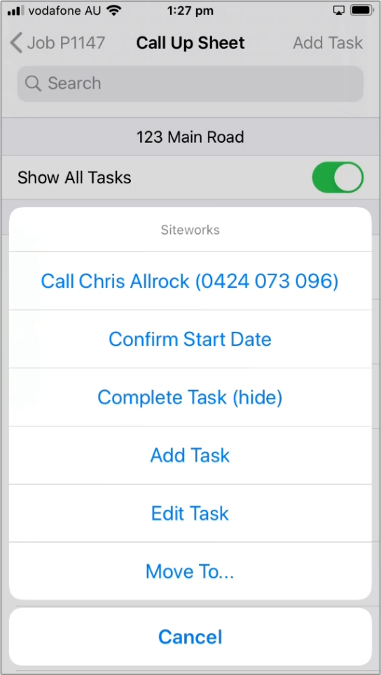 Updated over a year agoThe Call Up Sheet shows all active Tasks and Jobs for the current worksite