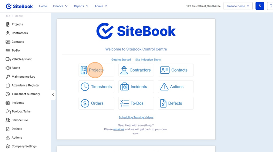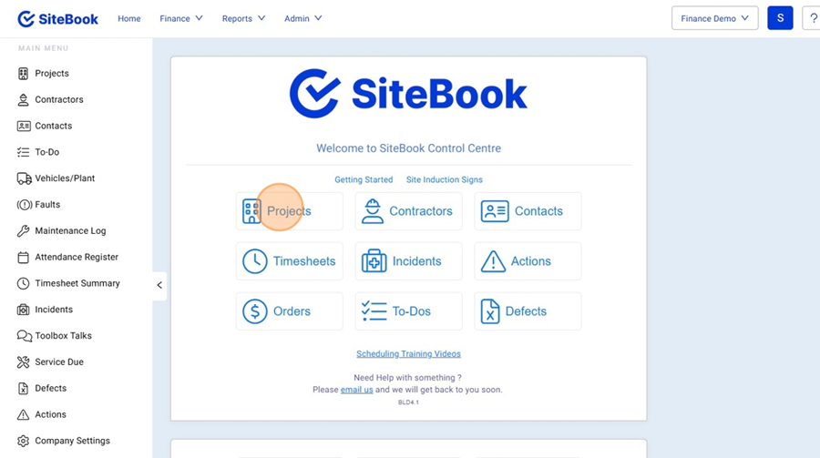5. From the Home Menu select "Projects"