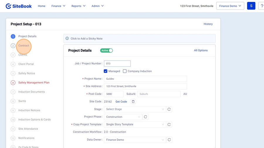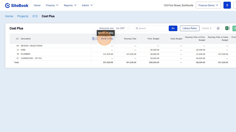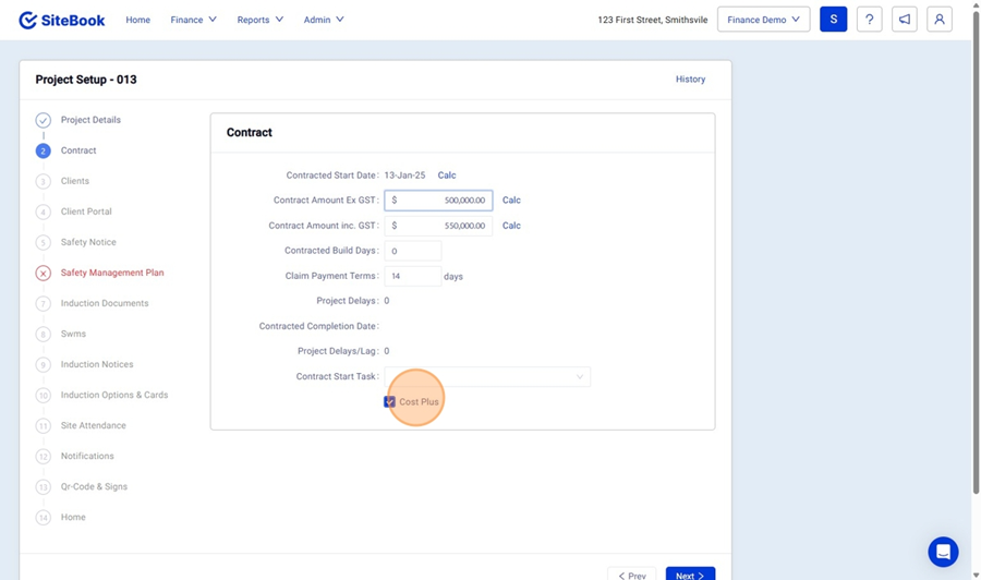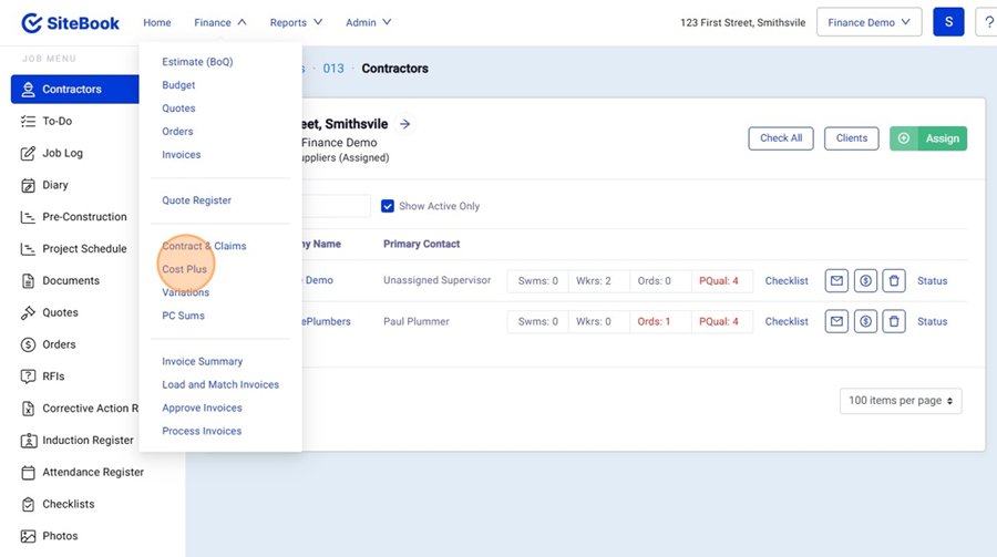 7. At the top of the screen, select the "Finance" Menu and click "Cost Plus"