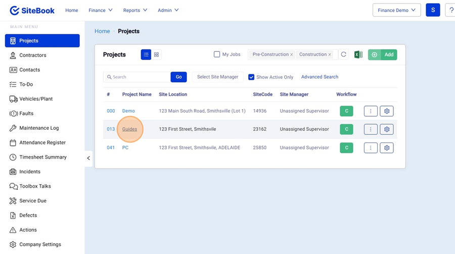 1. From the Homepage, select "Projects"