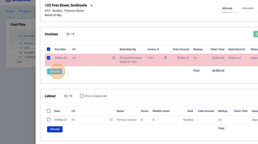 11. Select the Invoices / Labour / Materials you wish to allocate to your claim