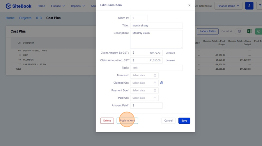 14. To Create an Invoice in Xero click the "Push to Xero" Button.