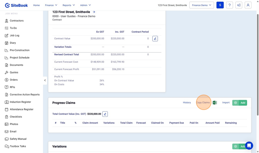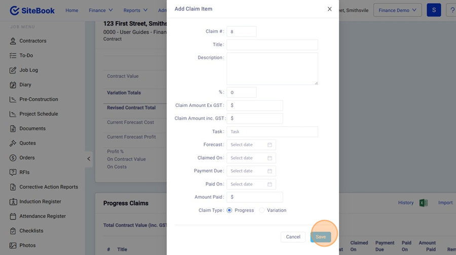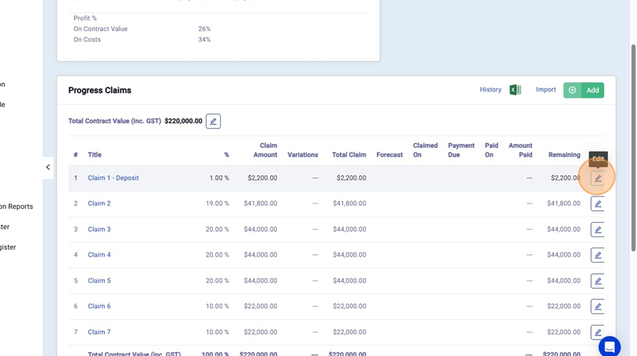 Client Claims: % of Contract Value Option (By Stage) | SiteBook Help Center