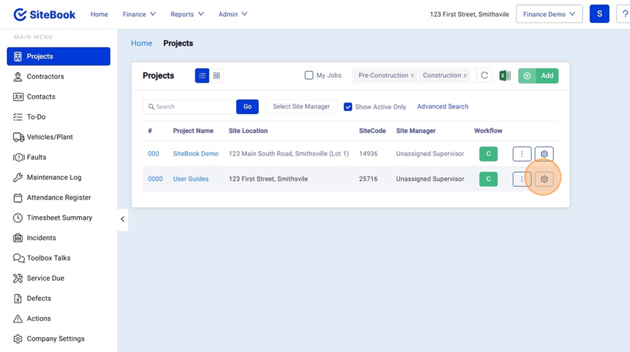 2. Find your project and open the "Project Setup" Menu