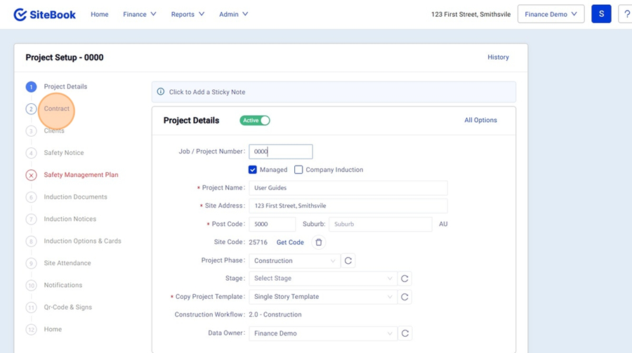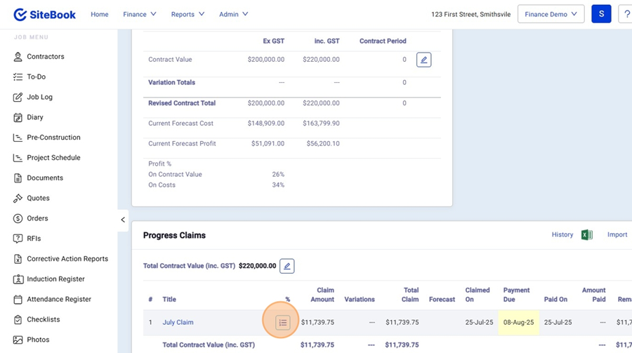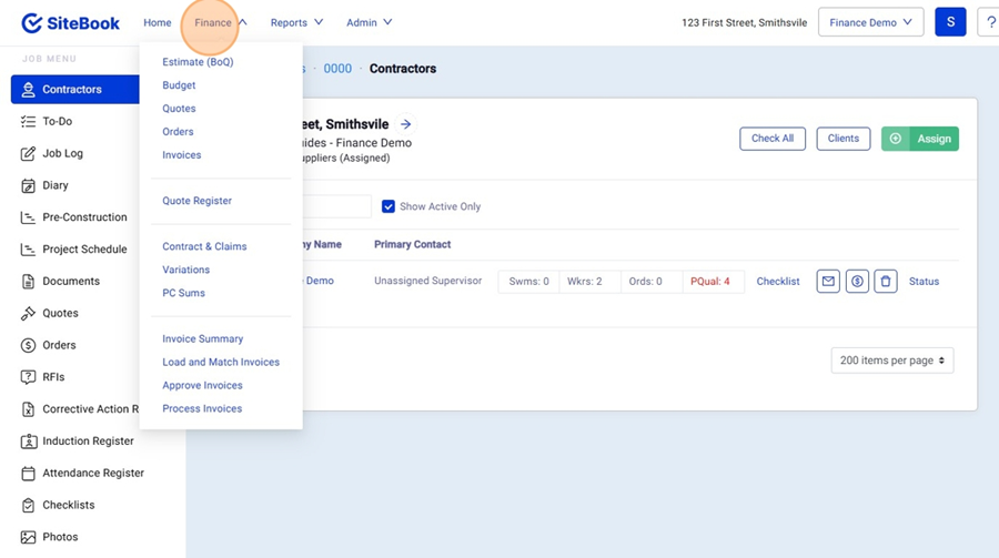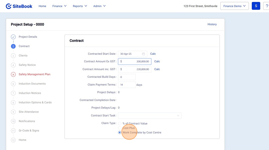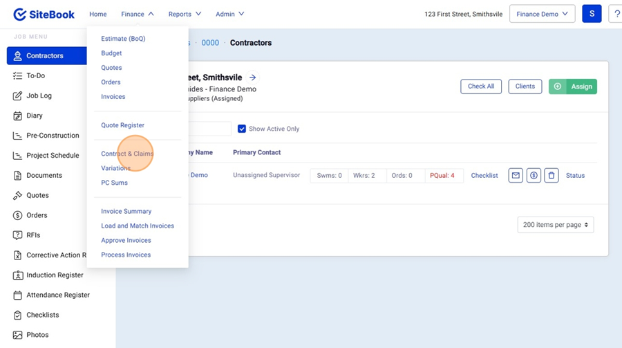 6. In the finance Menu select "Contract & Claims"