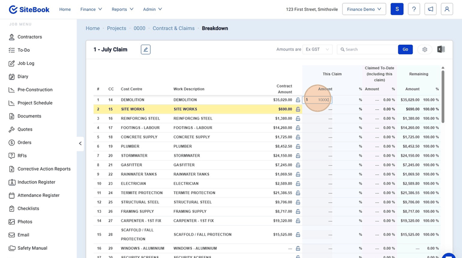 9. In the Amount Column you can add the dollar value you want to claim from the client.