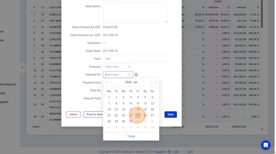 13. In the Edit Claims Menu, select the dates to update the claims status. (Forecast, Claimed On, Payment Due, Paid On)