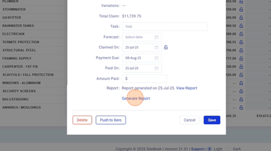 14. In the Edit Claim Menu, select "Generate Report" to create the PDF Report.