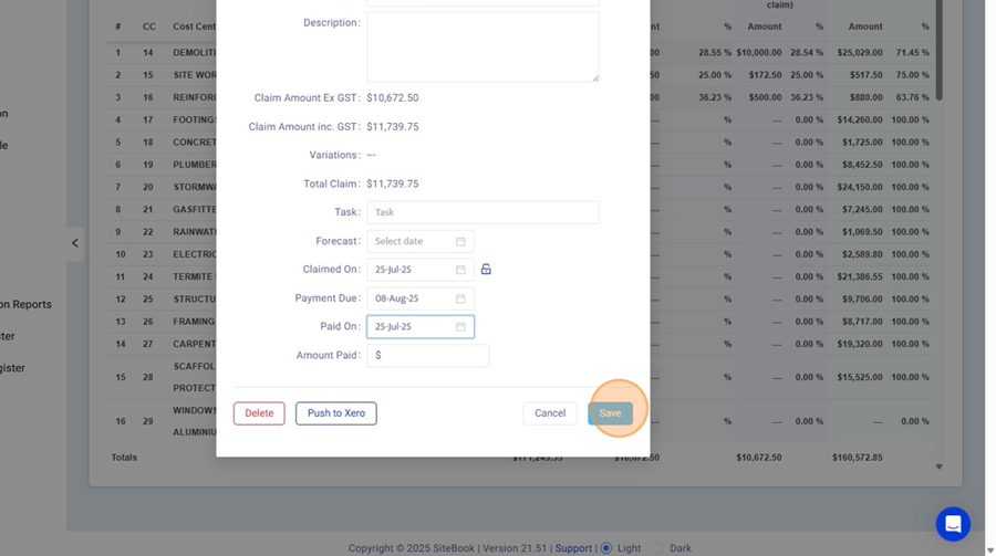 12. In the Edit Claim menu select "Push to Xero"
