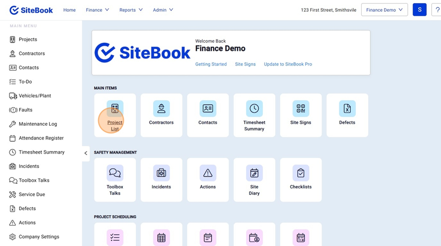 1. From the Homepage, select your "Project List"