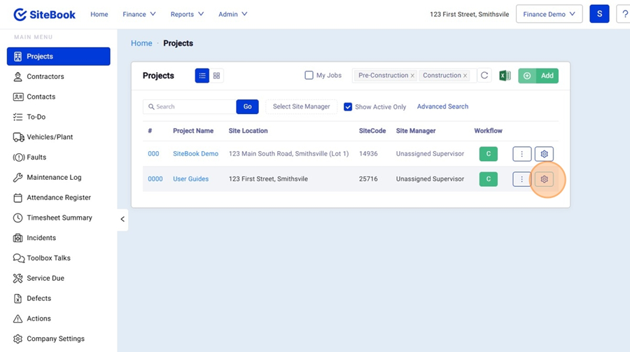2. In the "Project List" find your the project you want to set up the Client Portal for then open the "Project Setup" menu.