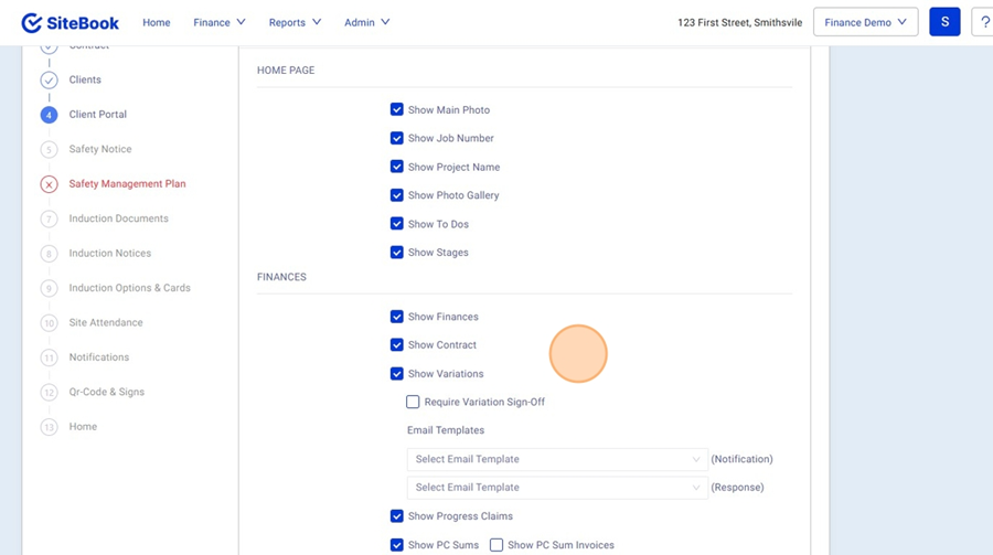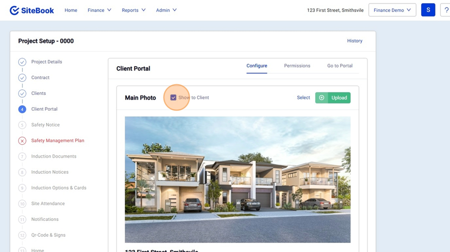 4. Through the Client Portal Setup you will have the option to "Show to Client". this will allow you to customise what the client can see in the Portal.