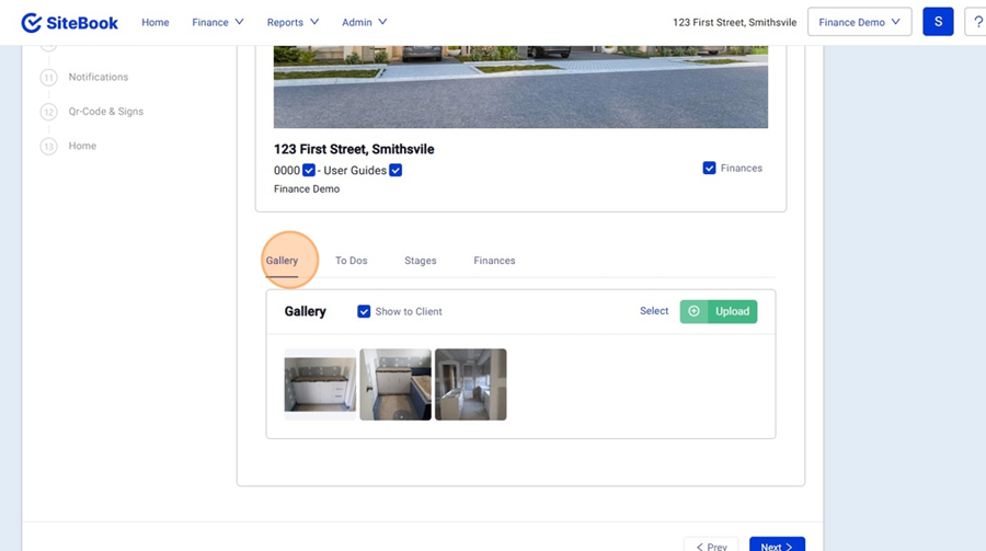 6. "Gallery" will show Photos that the client can see in the Portal. You can: