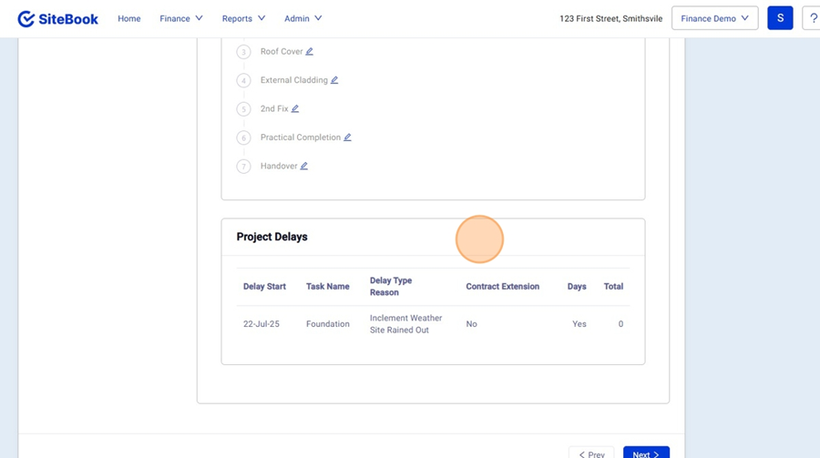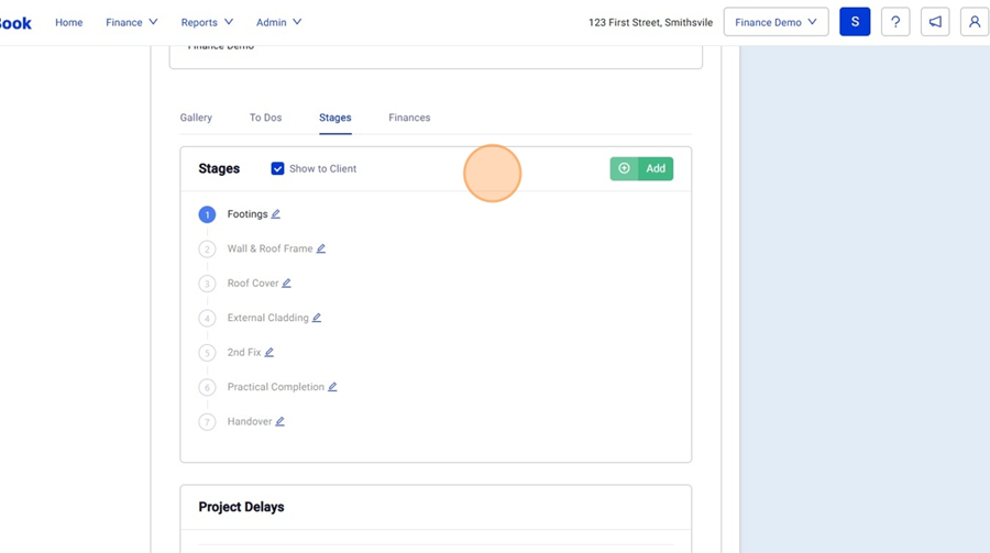 9. Further Down under "Stages" there is "Project Delays". You have to option of showing the delays that are occurring on site to keep the client informed. (To show them in the Client Portal they must be shared via the "Project Delays" Section of the Schedule.