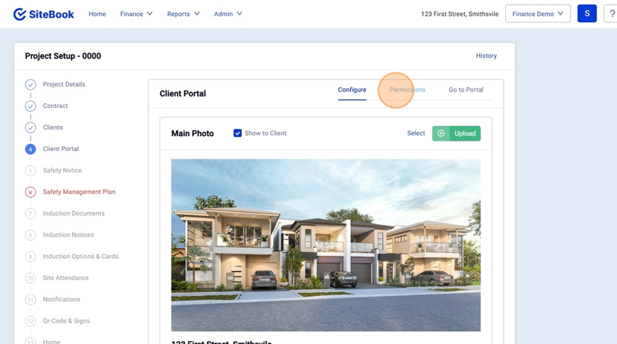 11. In "Project Setup" inside the Client Portal, Select "Permissions"