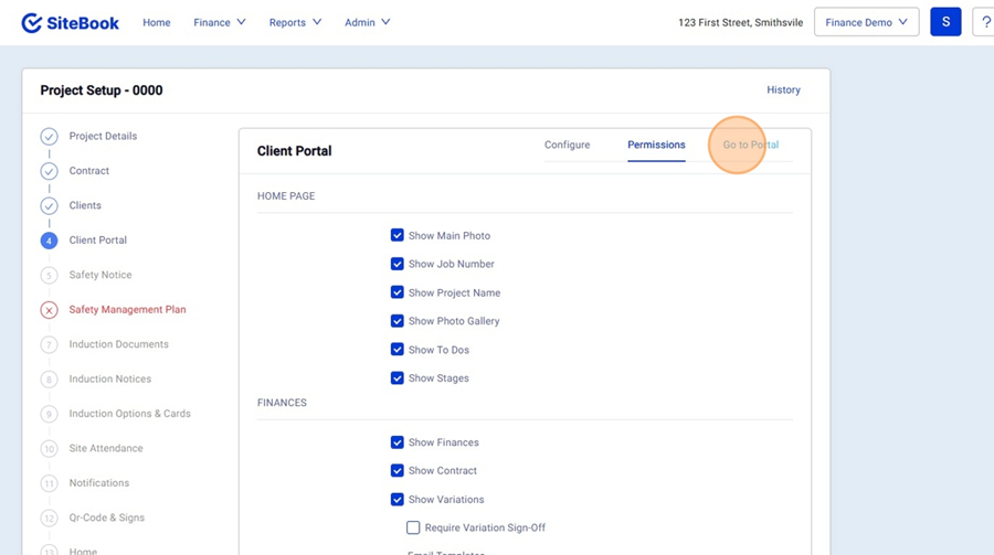 13. In "Project Setup" inside the Client Portal, Select "Go to Portal"