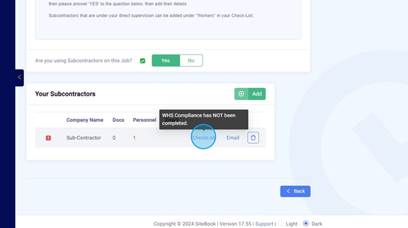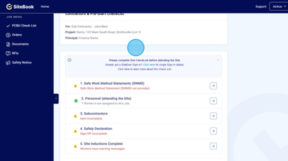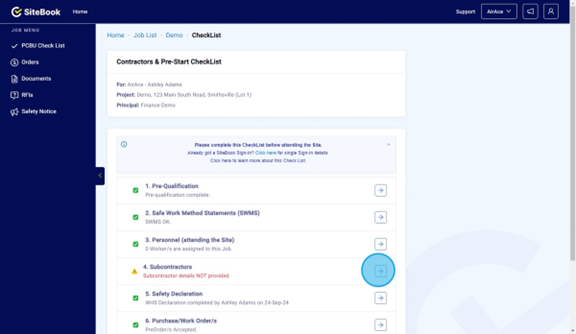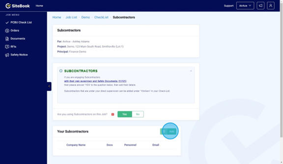 Contractor: Adding a Sub-Contractor to Pre-Start Checklist | SiteBook Help Center