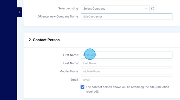 Enter the First Name, Last Name, Mobile Phone & email details for the Subcontractor.