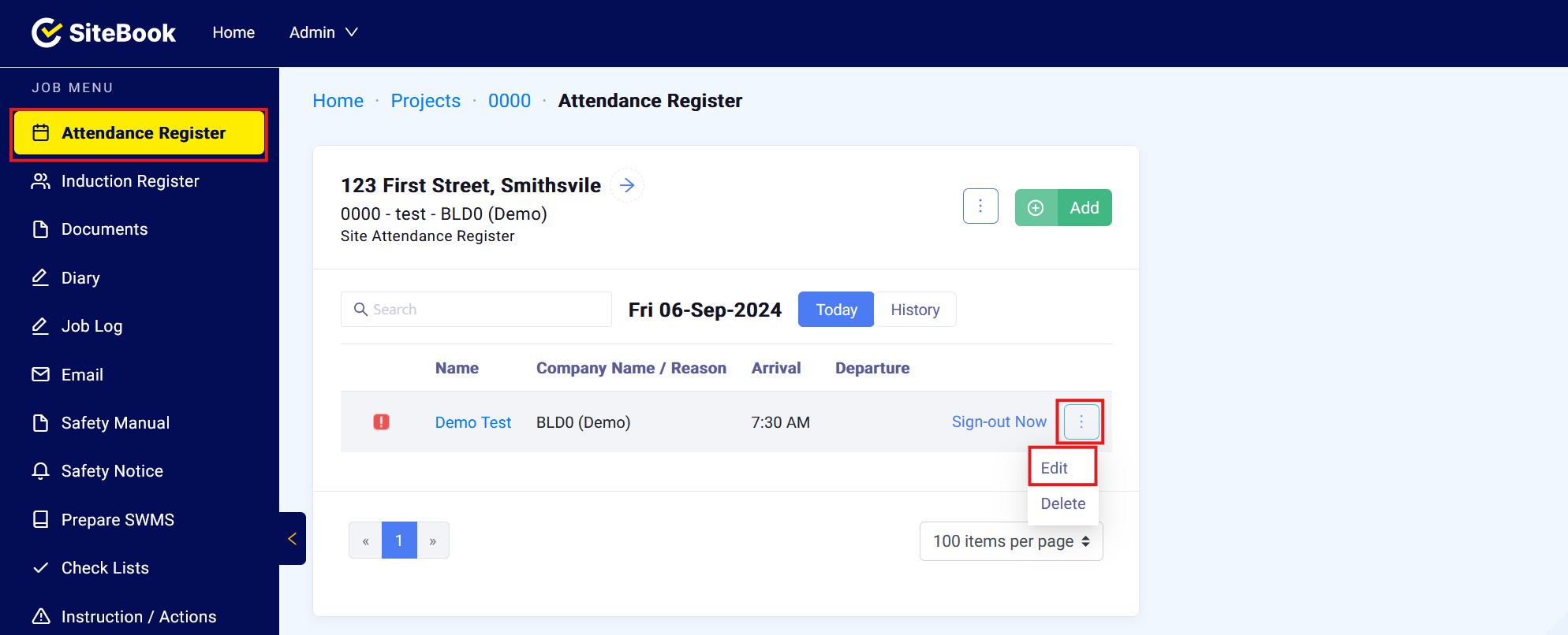 A guide on how to edit and update the Site Attendance Register