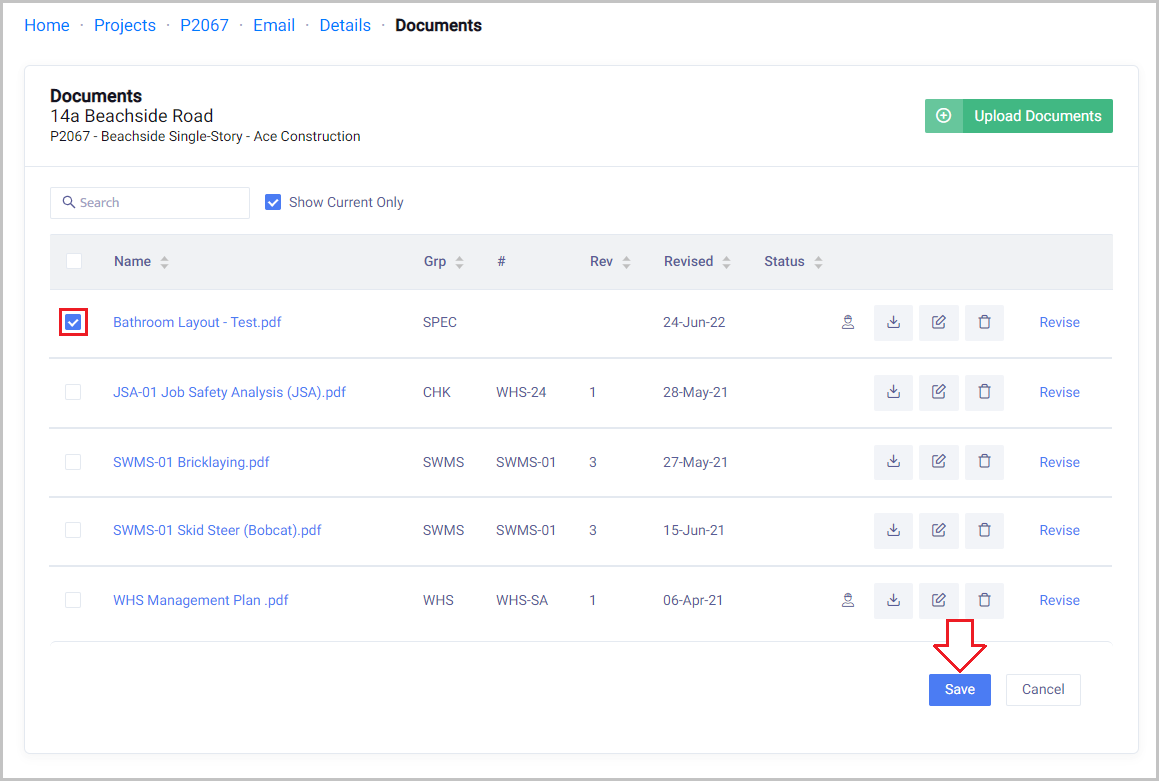 Tick the box next to Document/s that you want to add.