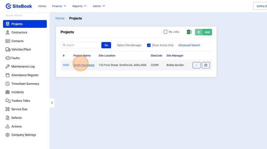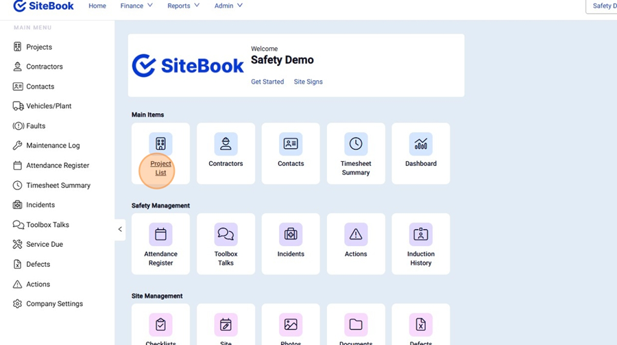 1. Click "Project List" to open your Project List