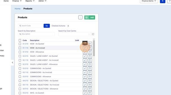 5. Click the Pencil Icon to edit a Product Item.