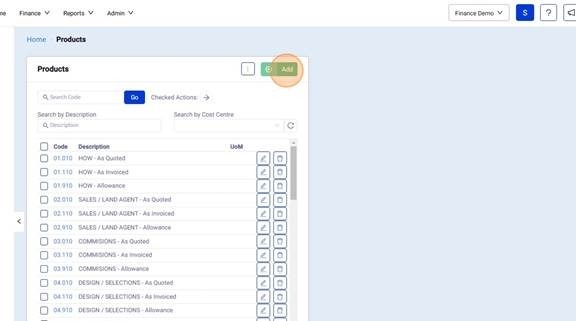 3. Click "Add" to create a New Product