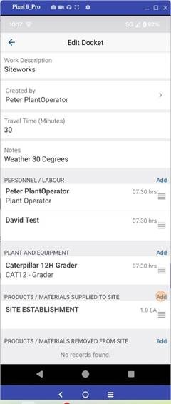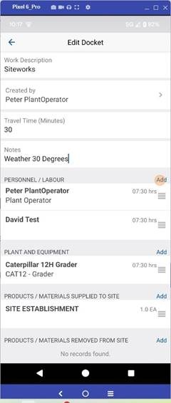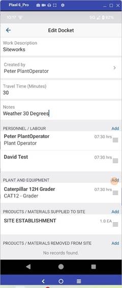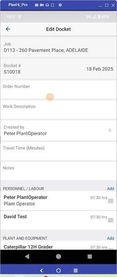8. Hours for the Plant & Equipment can be added using Duration (Hours Only) or Start / Finish. (Time & Breaks)