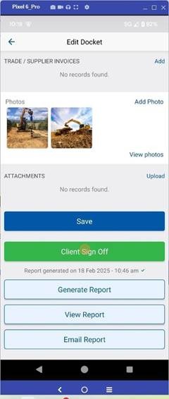 15. Select "Client Sign-Off to add in the Clients representative name, company and signature.