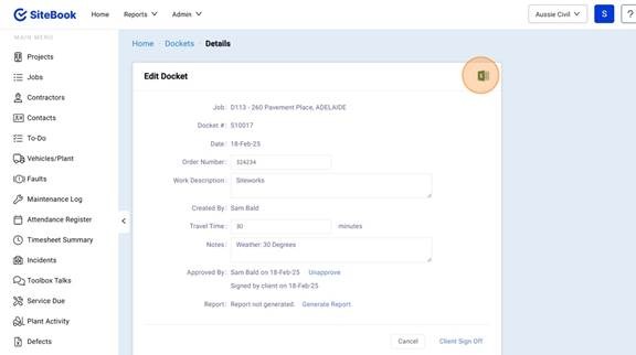 21. At the top of the screen in the first Docket Card, Select the Excel Icon in the top right to export the docket Items to Excel.