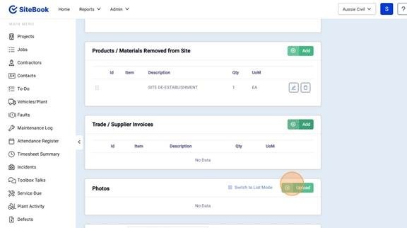 5. Enter your job details in the top card. (*Note when configured as a Daily report / Day sheet the timesheet fields will be removed and a labour table added in its place to record all hours for one day on one site)