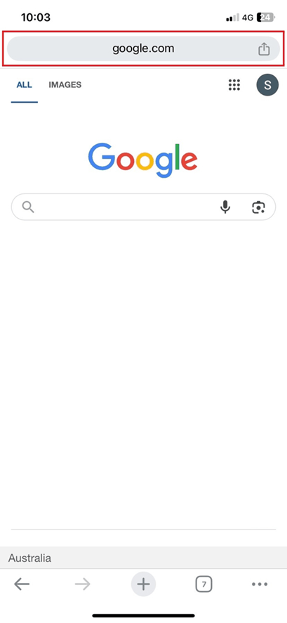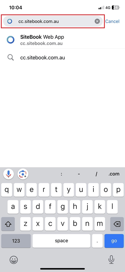 3. Type "cc.sitebook.com.au" in the URL and then select go.