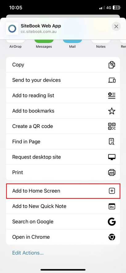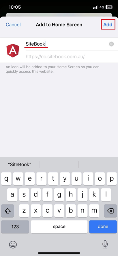 8. The SiteBook Webapp will now be available from your home screen.