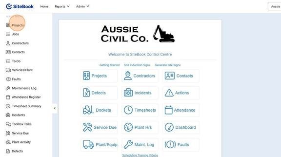1. Select "Projects" from the Left hand Menu.