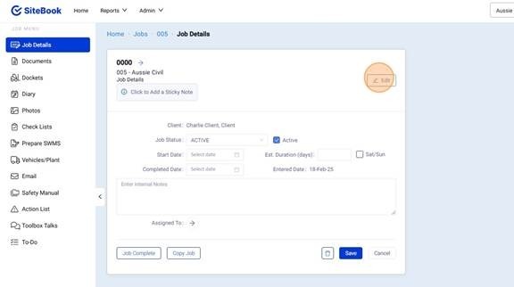 How to Edit a Client on a Job / Project. | SiteBook Help Center