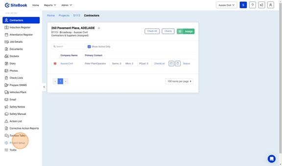 3. Select "Project Setup" from the left hand side menu