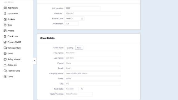 Editing a Client on a Job