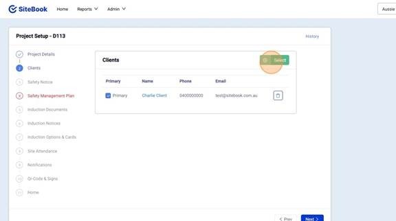 5. Click "Select" to choose a client.