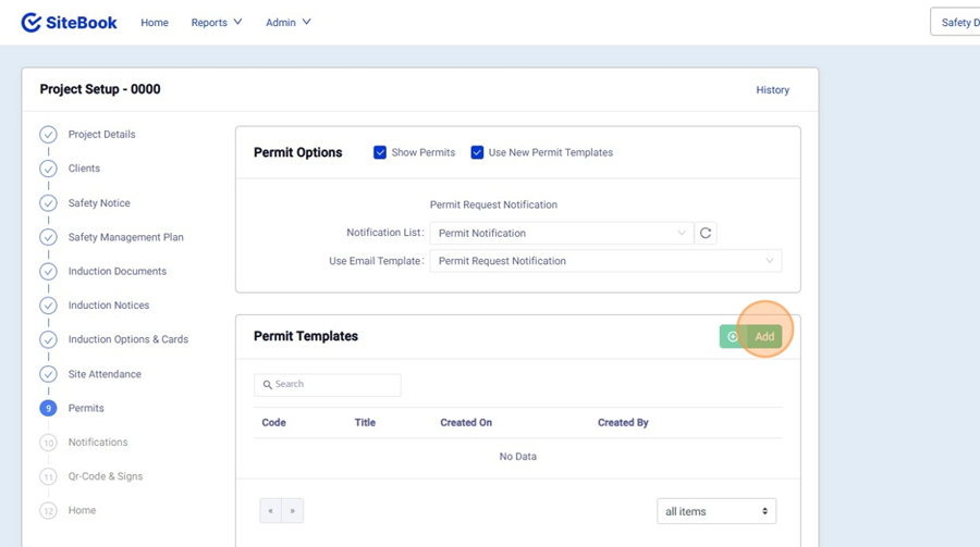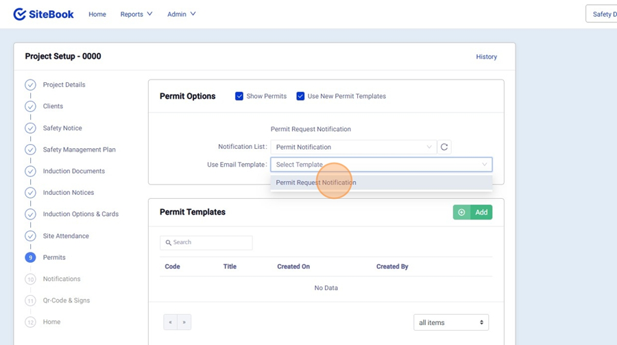 3. In the Project Setup Menu select "Permits" from the left hand side.