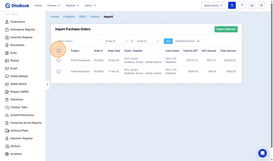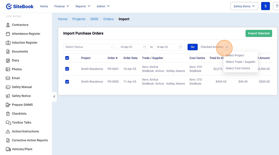 Import Orders from Xero to SiteBook | SiteBook Help Center