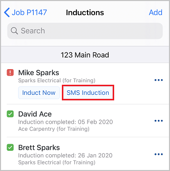 Site Managers can SMS Induction Requests to Trades using the mobile app
