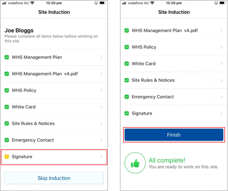 A worker induction will show any fields not yet complete wil Red or Yellow Icons