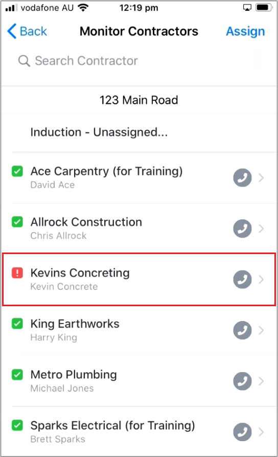 To notify a contractor click the Phone Icon on the monitor contractors menu