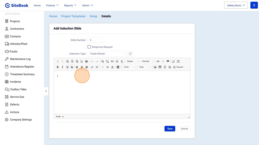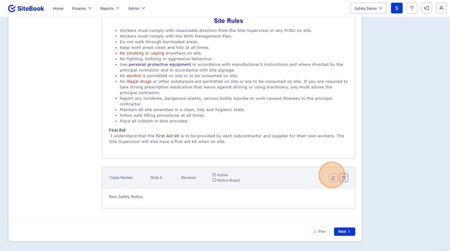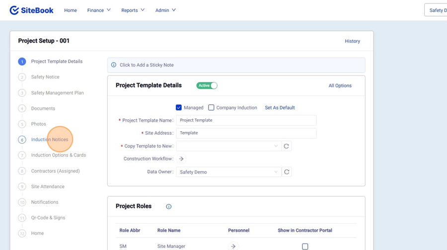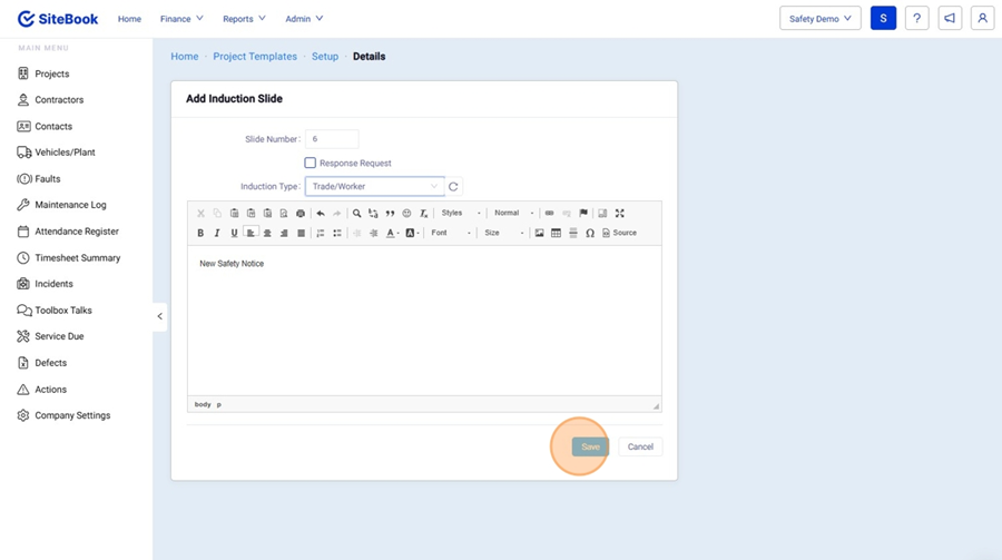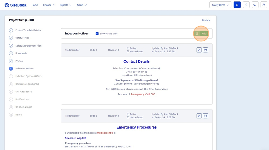 Project Template: Editing the Site Induction Notices | SiteBook Help Center
