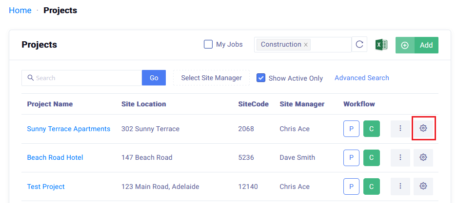Home → Projects → Click on the Project Set Up