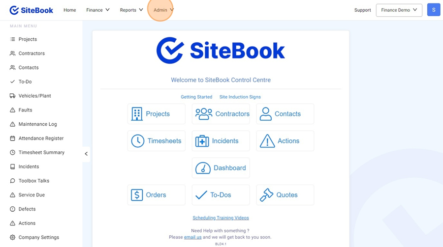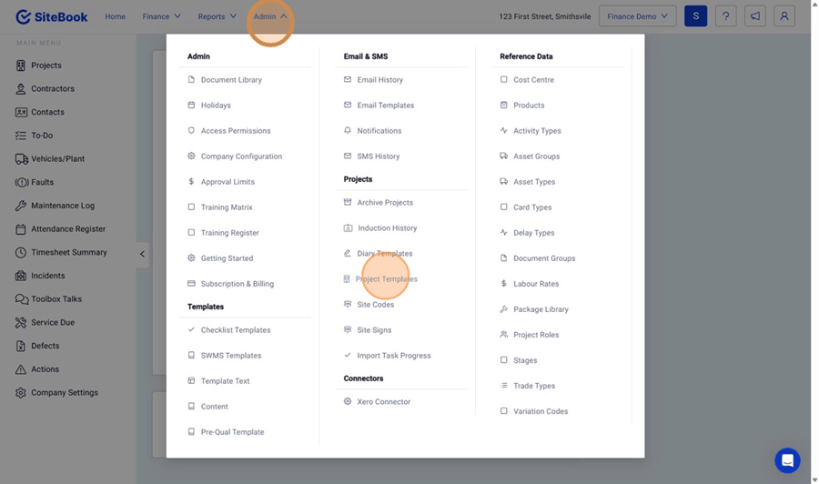 12. To edit your Project Templates select the "Admin" Menu from the top of the screen and then select "Project Templates"