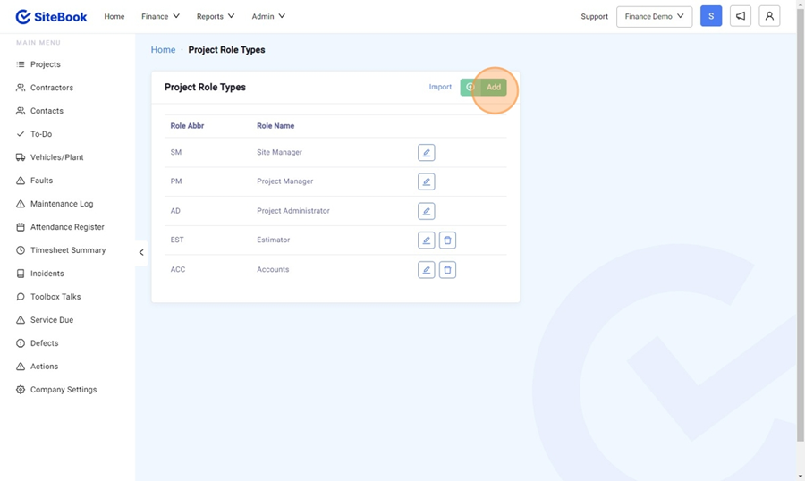 Roles: How to Edit/Add Project Roles in SiteBook. | SiteBook Help Center